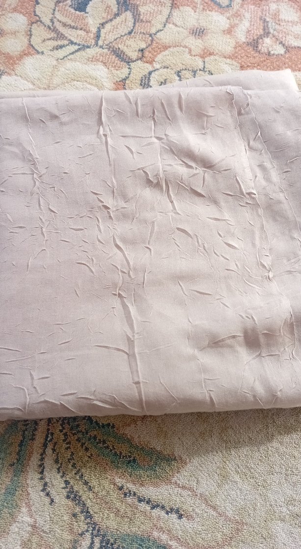 Bej renkte, keten kumaştan, salaş ve parlak görünümlü kadın şal, sade ve bohem Paris tarzında.