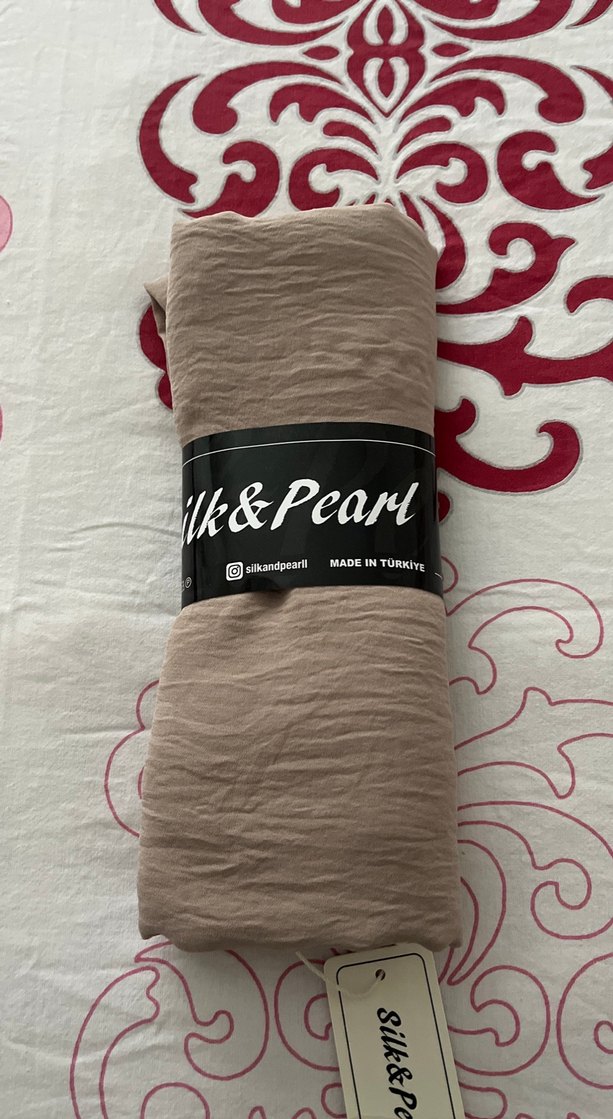 Bej renkli keten kadın şal, drapeli yapısıyla rahat ve sade bohem tarz sunar. Marka: Silk&Pearl, Türkiye yapımı.