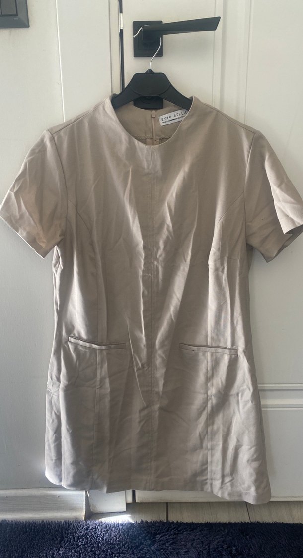 Bej keten kumaştan, kısa kollu ve yuvarlak yakalı kadın tişörtü. Minimalist ve desensiz tasarımıyla günlük kullanıma uygundur. Effortless chic tarzı sunar.
