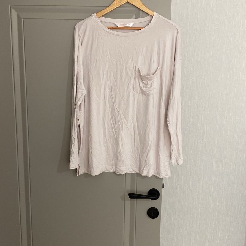 Bej pastel tonlarda, keten kumaştan yapılmış, uzun kollu ve salaş kesime sahip kadın tişörtü. Minimalist ve bohem tarzda, cep detayı bulunur, günlük kullanıma uygundur.