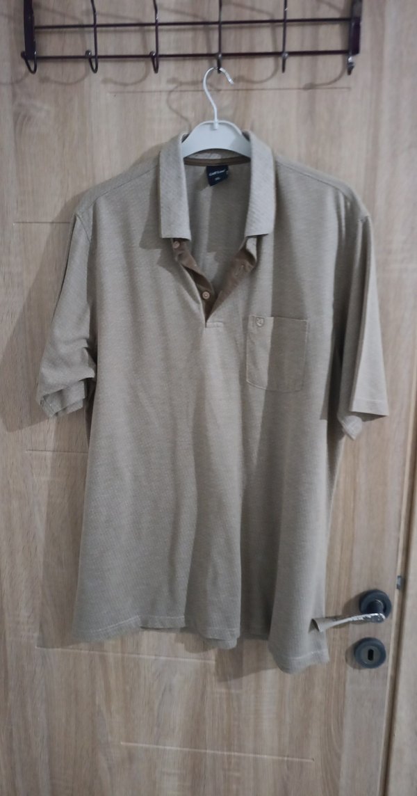 Bej keten kumaştan, kısa kollu, düğmeli ve yakalı polo tişört. Rahat kesimi ve göğüs cebine sahip, günlük ve sokak stiline uygun. 3xl görünüyor ama XL 2x ile giyinebilir
