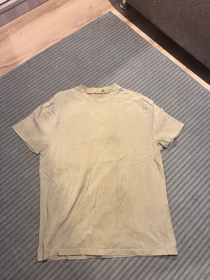 Bu erkek tişörtü, keten kumaştan, kısa kollu, bisiklet yaka ve bol kesimdir. Bej rengi ve sade tasarımıyla günlük rahat kullanıma uygundur.