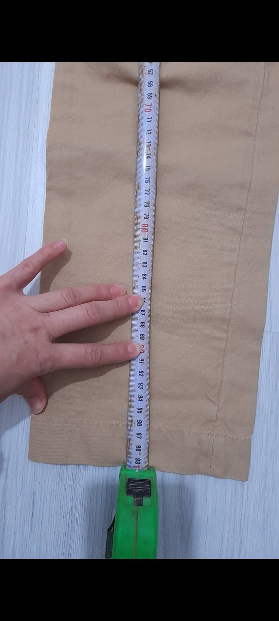 Bej renkli, regular fit kumaş pantolon. Dikişli ve düz sade tasarımıyla günlük kullanıma uygundur. tok bir kuumasi var alman ithal ürün etiketli