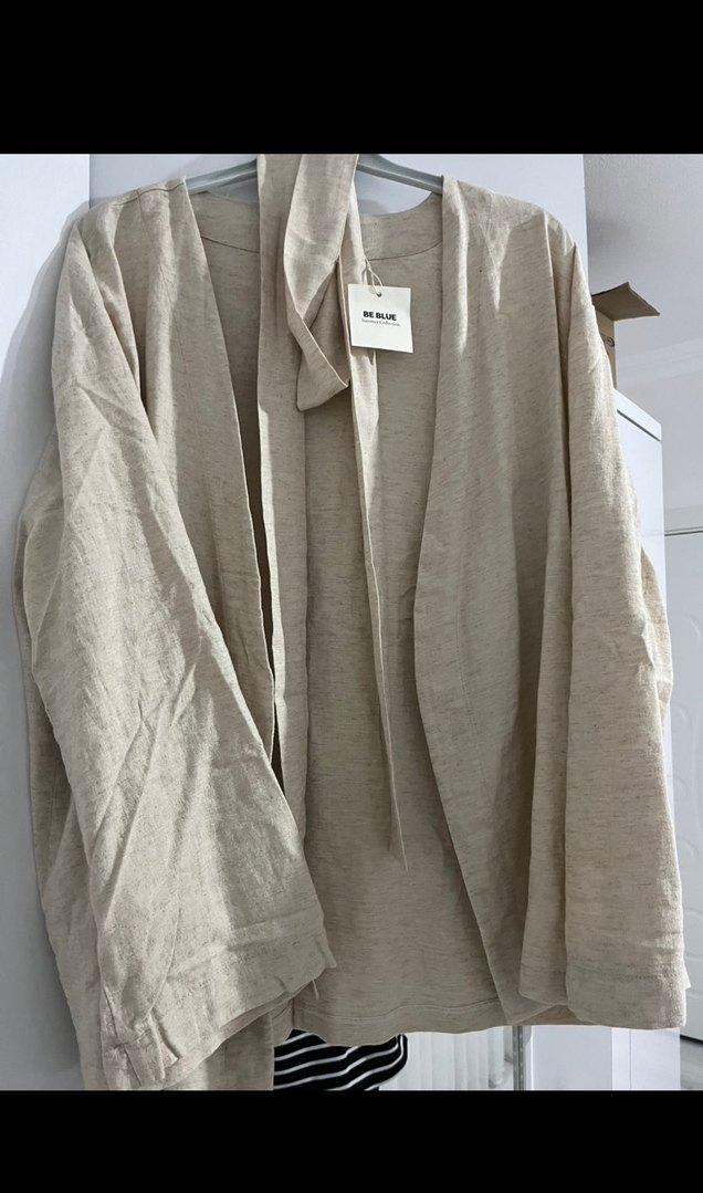 Bej keten kumaş Tarzı Düz kimono