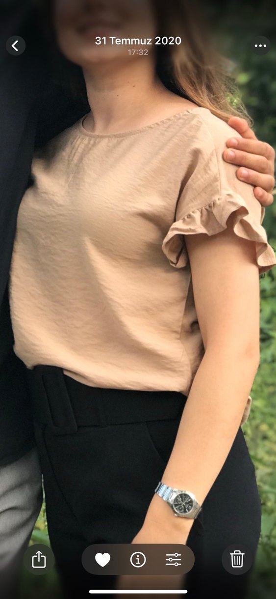 Bej Keten Kumaşlı Fırfır Detaylı Kadın Bluz