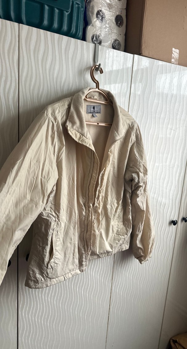 Bej keten kumaştan, uzun kollu, notalı yaka ve bol kesimli midi kadın ceket. Günlük sokak stili için rahat ve şık bir parça.