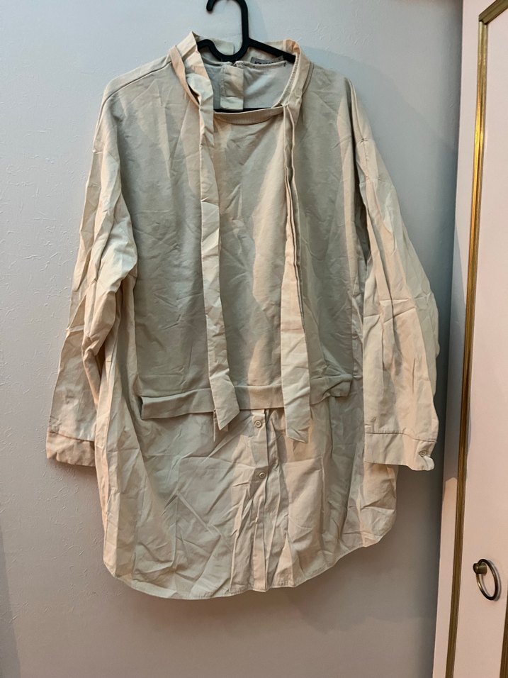 Bej Keten Midi Uzun Kollu Gömlek