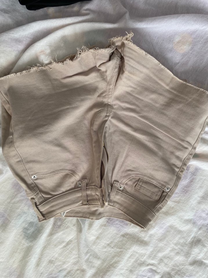 Bej renkte keten kumaştan, bol kesim ve kısa paçalı hamile şortu. Rahat ve gündelik sokak stili için uygun, zahmetsiz şıklık sunar.