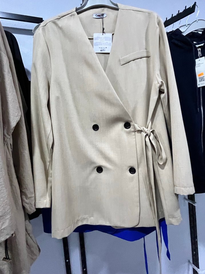 Ürün etiketli mağaza ürünüdür herhangi bir tiftik problemi yaşamazsınız. Bej renkte keten kumaştan yapılmış, düğmeli, kısa boylu ve regular fit kadın blazer ceket. Uzun kollu ve desen içermeyen şık bir modeldir. Pazarlığa açığız.Geniş bir kalıba sahiptir Standart bedendir.