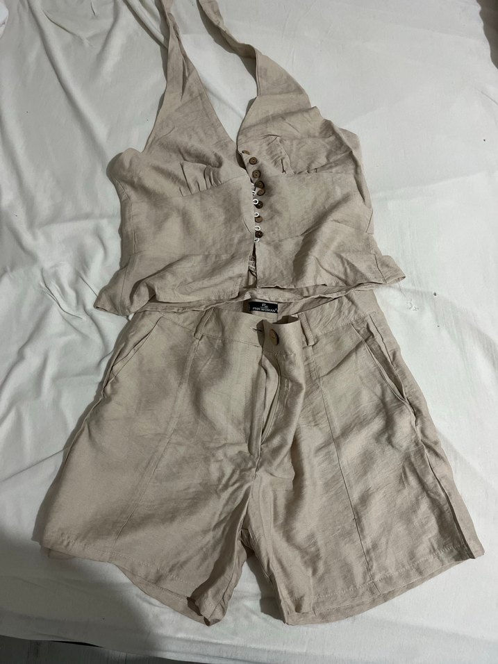 Bej Keten Mini Kadın takım
