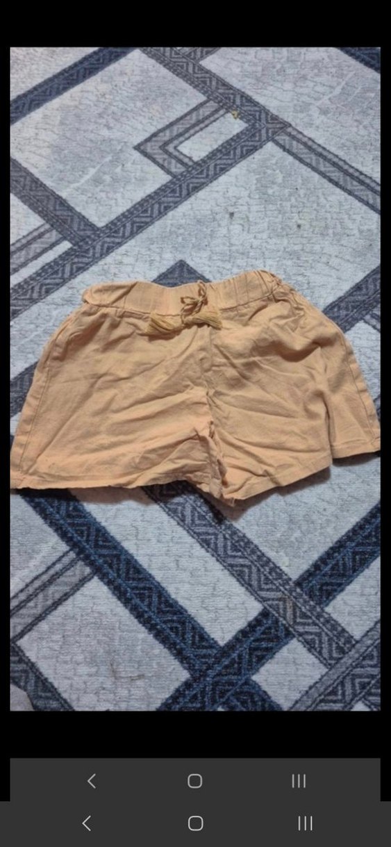 Bej renkte, keten kumaştan yapılmış, bol kesim ve ayarlanabilir bel bantlı mini şort. Günlük rahat sokak stili için uygundur.