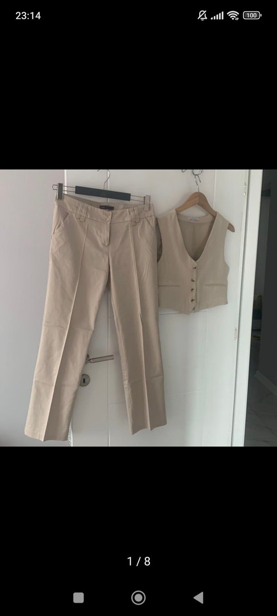 Bej Keten Ofis Pantolonu+ de facto keten yelek