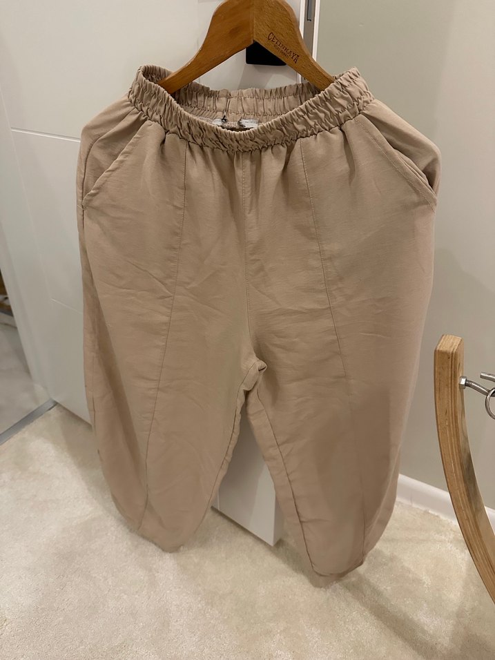 Xs beden diyorum beli lastikli olduğu için ama S beden ince bellilerede olur şalvar model kumaşı ince yazlık Bej renk keten kumaştan, rahat kesim ve midi boyda, günlük kullanıma uygun şık ve rahat kadın pantolonu. Yumuşak ve nefes alabilir kumaş.