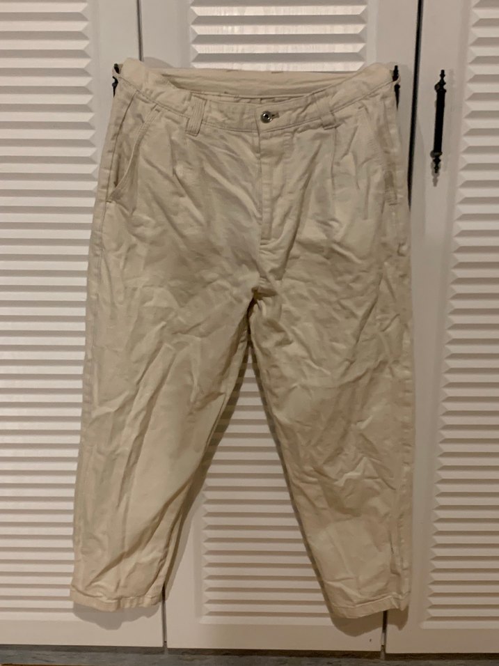 Bej keten kumaştan, rahat kesimli ve midi boyda, desensiz günlük kullanıma uygun pantolon. Rahat ve zahmetsiz şıklık sunar.