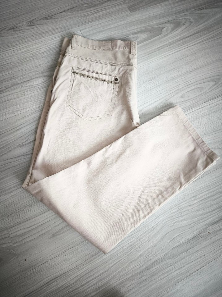 Bej keten kumaştan, rahat kesime sahip, fermuarlı detaylı pantolondur. sorunsuz ,yeni gibidir ölçü bilgisi görsellerdedir