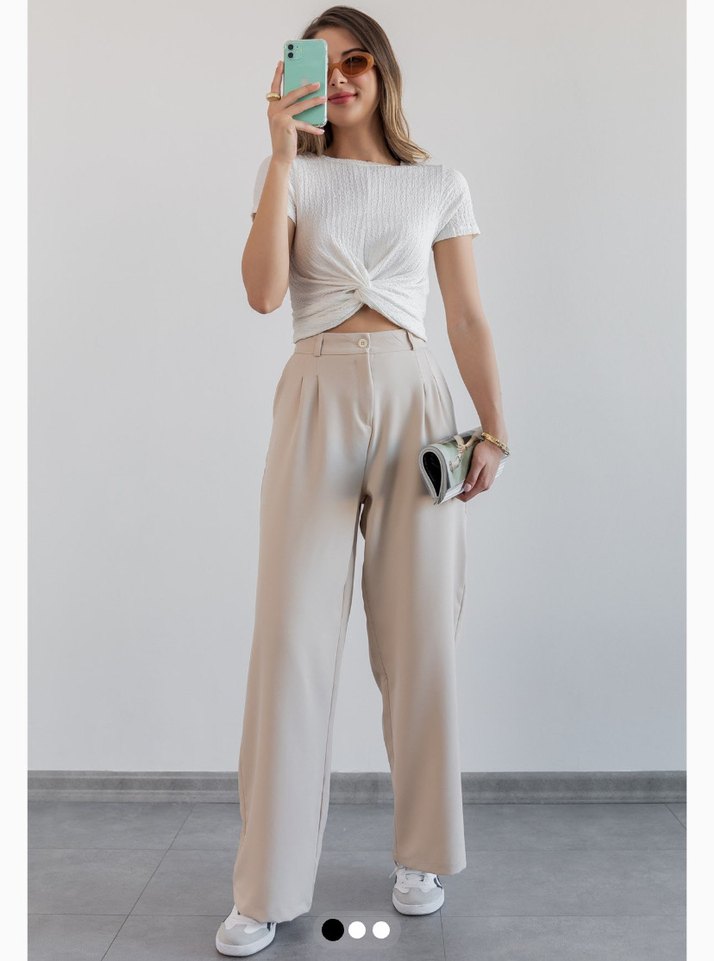 Bej Keten Salaş Kadın Pantolon