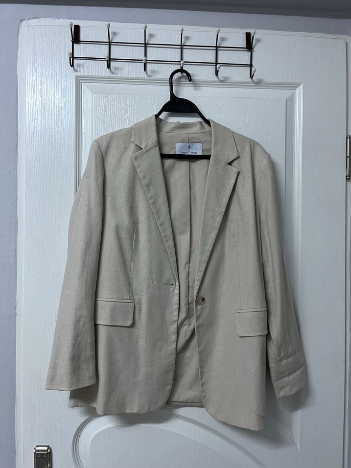 Bej Keten Stradivarius Oversize Blazer Ceket
