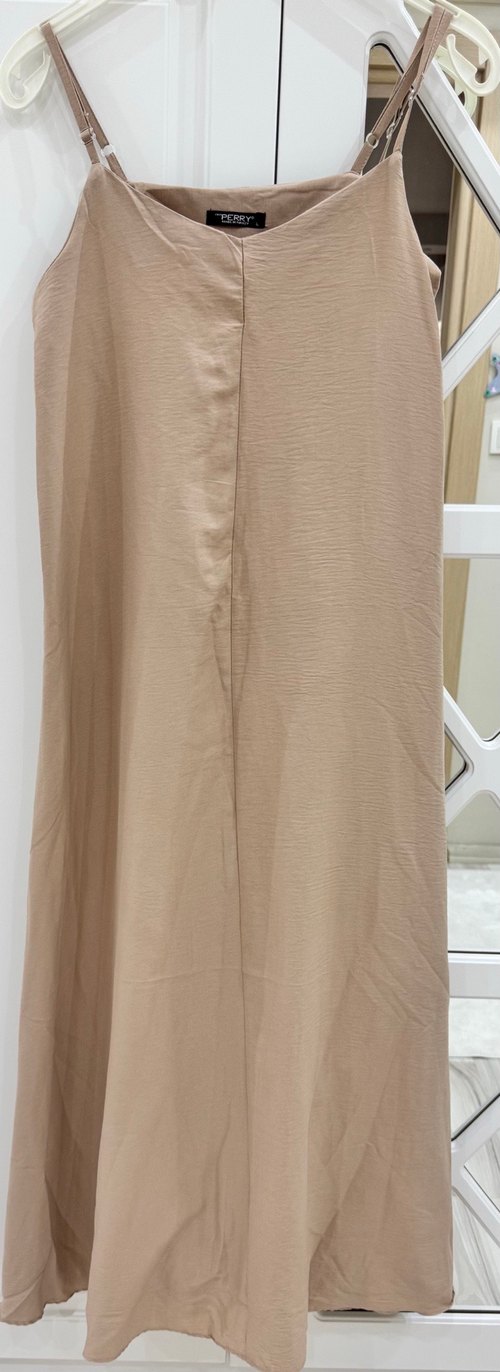 Bej keten uzun elbise, drapeli ve kolsuz tasarımıyla, salaş kesim ve V yakasıyla minimalist bir stil sunar. Günlük kullanım için uygundur. Sıfır