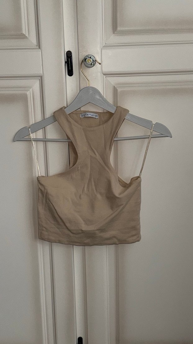 • Marka: Dilvin • Renk: Bej • Askılı, sırt detaylı crop top • Sadece 2 kez giyildi, tertemiz • Kumaşta esneme/çekme/deforme yok • Hem günlük hem kombinlik şık bir parça • Fiyat uygundur, pazarlık payı vardır Keten kumaştan, bej renkte, yüksek yakalı ve kolsuz, vücuda oturan midi uzunlukta kadın atlet. Minimalist ve sokak stili için uygun.