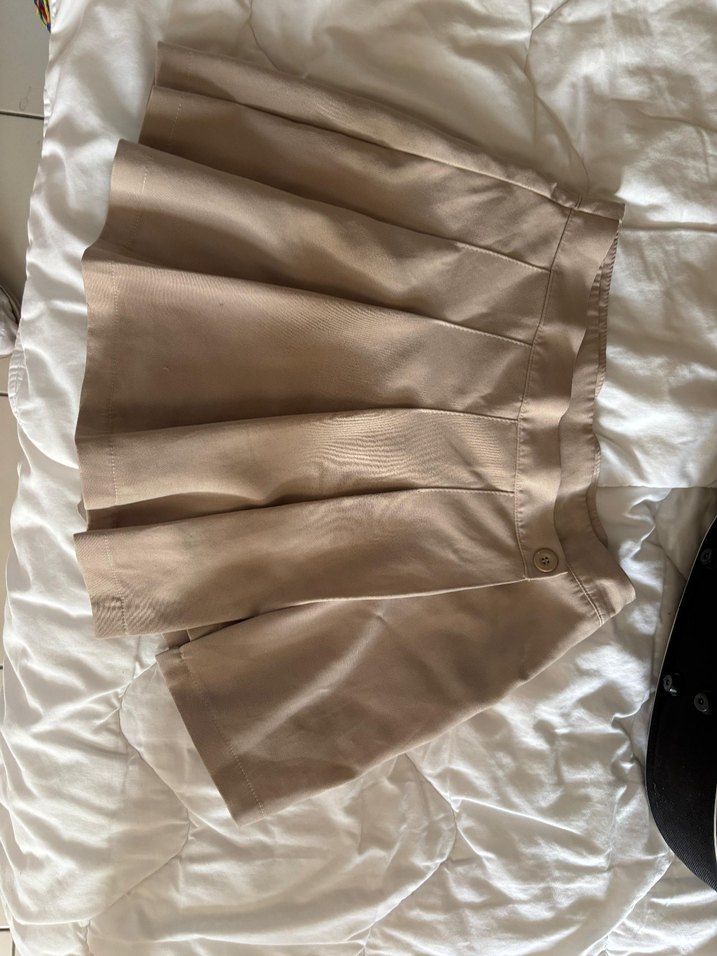 Bej keten pilili midi etek, rahat ve yumuşak dokusuyla günlük sokak stiline uygundur. Gevşek kesim ve pastel tonlarda.