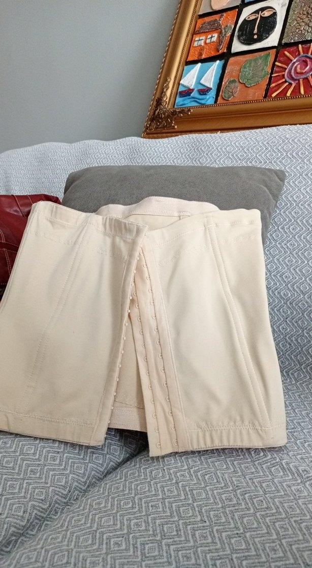 Bej renkte, kısa boy ve vücuda oturan bel korsesi. Düz ve desensiz tasarıma sahip, ön kısmında ayarlanabilir çıtçıtlar bulunur. ince bel için abiye için uygun
