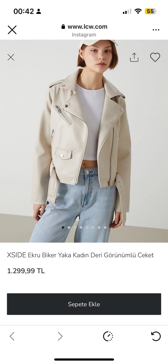 Bej renkli, kısa kesim, fermuarlı detaylara sahip, oturmalı deri kadın ceket. Sokak modasına uygun, modern ve şık görünümlü. 3842 arasında rahatlıkla olur bir kere sadece giyildi herhangi bir deformasyon vs hiçbir şey söz konusu değil ürünün kalitesi derisi harika