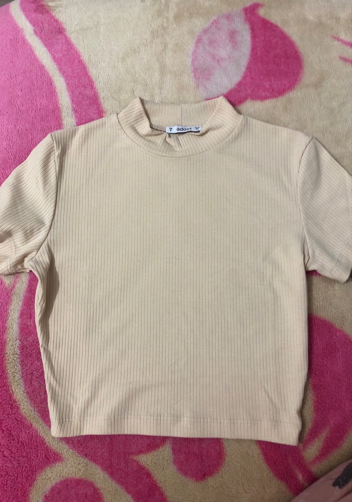 Bej Kısa Kollu Balıkçı Yaka Tişört