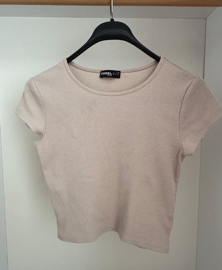 Bej renkte, kısa kollu ve yuvarlak yaka, soft keten kumaştan yapılmış, sade ve basic kadın tişörtü. Günlük kullanıma uygundur.
