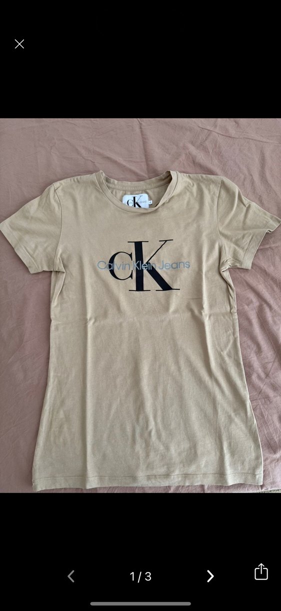 Pamuk kumaştan, kısa kollu ve bisiklet yaka olan bu bej tişört, Calvin Klein baskısıyla günlük rahat şıklık sunar. Orijinal