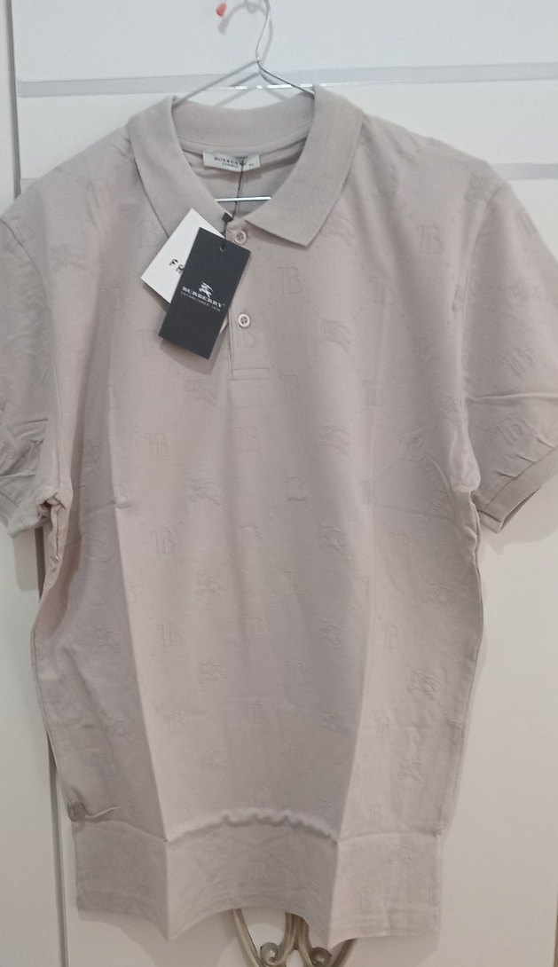Bej renk, kısa kollu erkek polo tişört, yakalı ve rahat kesim. Yumuşak keten kumaş üzerine hafif baskılı desen içerir.