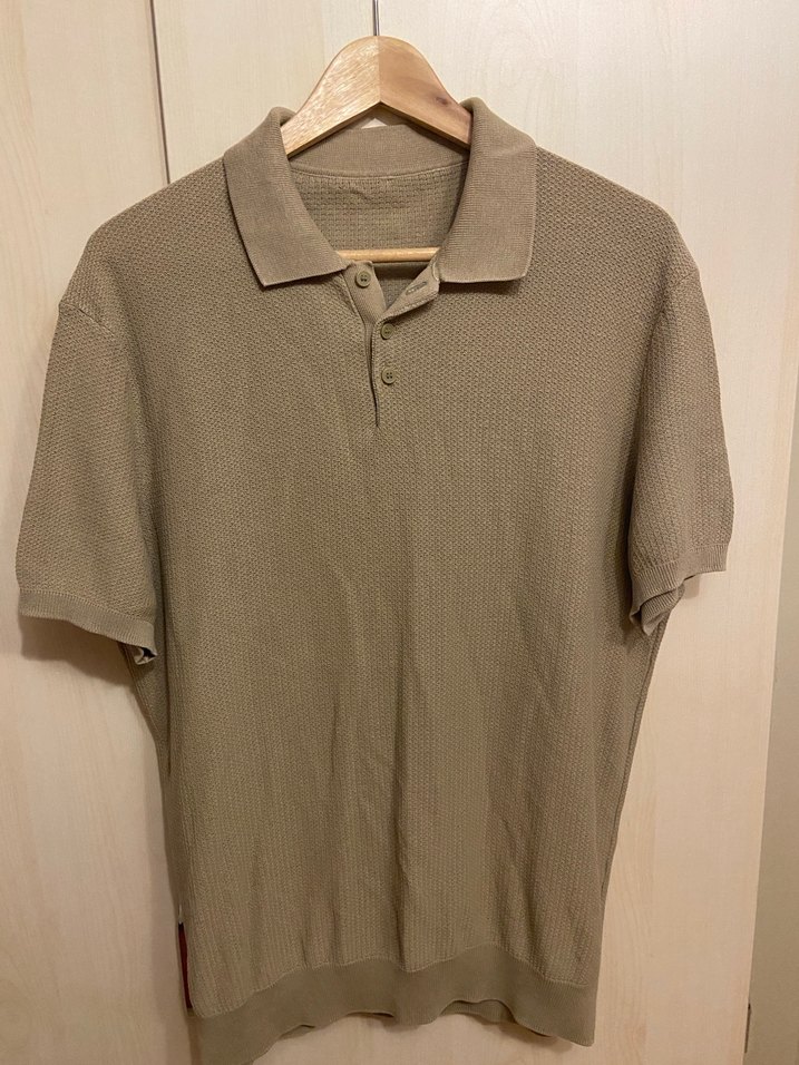 Bej renkli, kısa kollu ve yakalı erkek polo tişört. Düğmeli ön kısmı ve bol kesimiyle günlük rahat kullanıma uygundur. M-L uygundur
