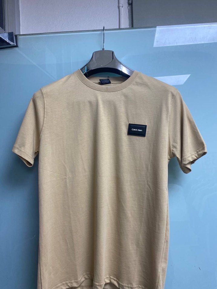 Almadan önce yazınız Yumuşak sentetik kumaştan, kısa kollu ve bisiklet yaka bej erkek tişört. Rahat kesimi ve sade tasarımıyla günlük kullanıma uygundur.