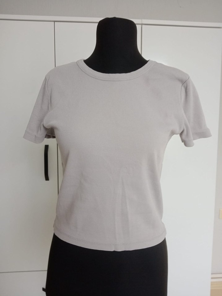Bej renk, kısa kollu, yuvarlak yaka kadın tişörtü. Pamuklu kumaştan üretilmiş, sade ve şık tasarımıyla günlük sokak stiline uygundur.