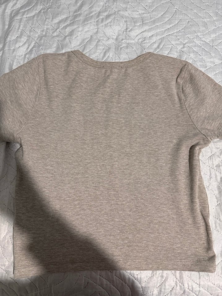 Bej Kısa Kollu kalın kumaşlı tişört