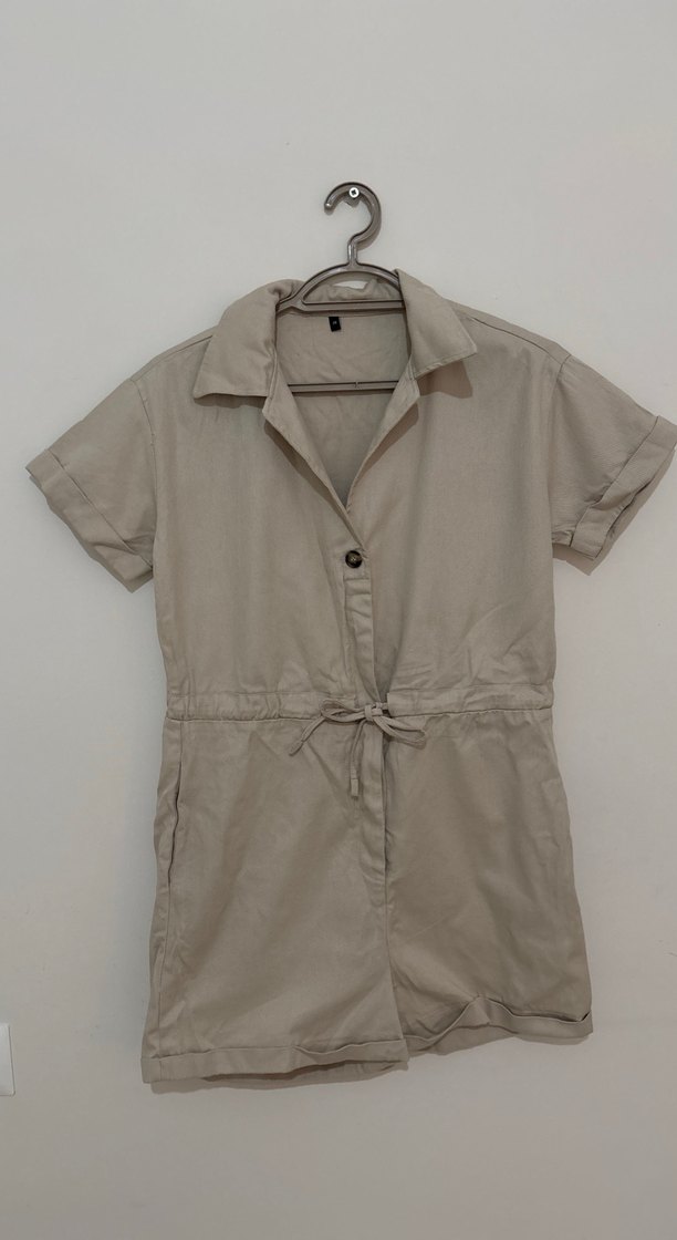Bej Kısa Kollu Keten Tulum