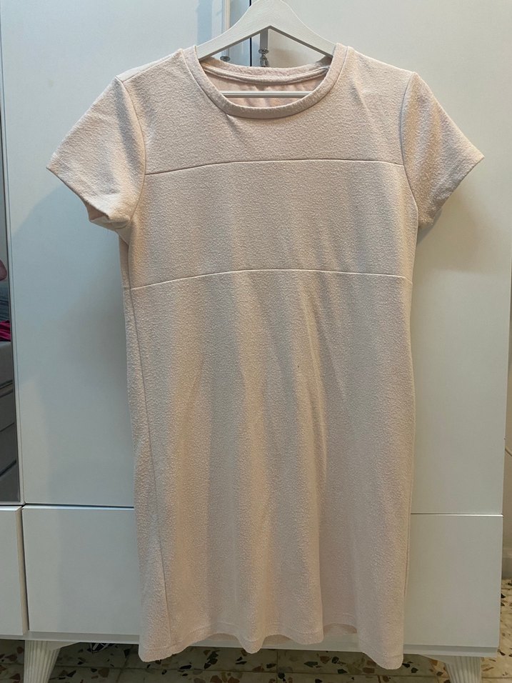 Bej,Pudra renk tonu, kısa kollu, mini boy salaş tarzda yumuşak dokulu kumaş, baharlık ve kışlık için uygundur. Sorunsuzdur