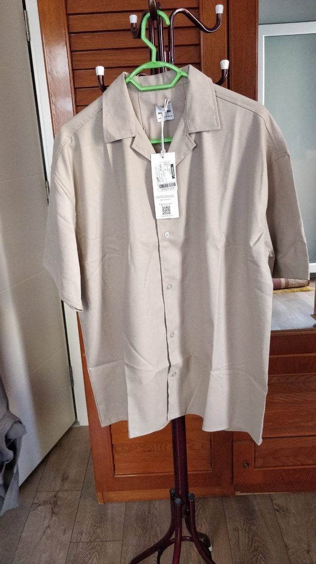 Bej Kısa Kollu Pamuklu Erkek Gömlek