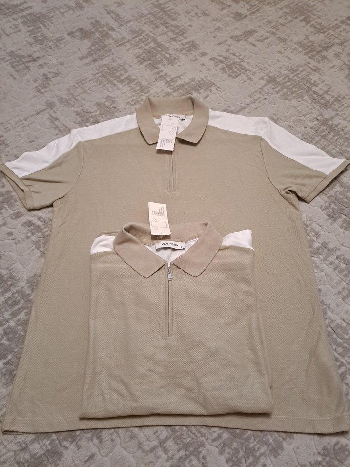 Bej renkli, beyaz omuz şeritli kısa kollu polo tişört. Pamuklu, rahat ve trend sokak stili için dar kesim.Adet fiyatıdır