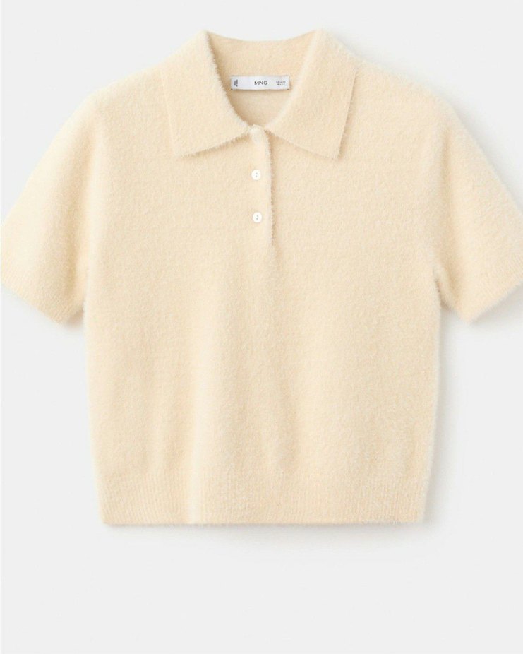 Bej renkli, yün triko kumaştan yapılmış, kısa kollu, yuvarlak yakalı kadın kazak. Rahat kesimi ve normal boyu ile günlük kullanıma uygundur.