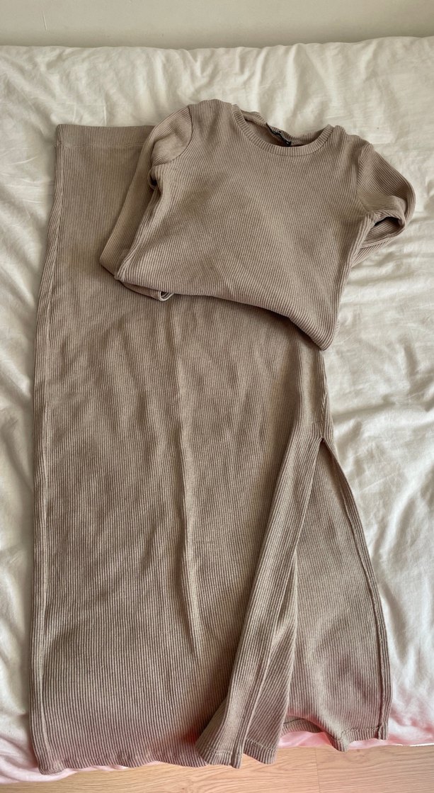 Bej renkli, kısa kollu ve yuvarlak yakalı uzun elbise. Yumuşak keten kumaştan, fit kesim ve yandan yırtmaçlı. Günlük kullanıma uygun, rahat ve sade bir model.