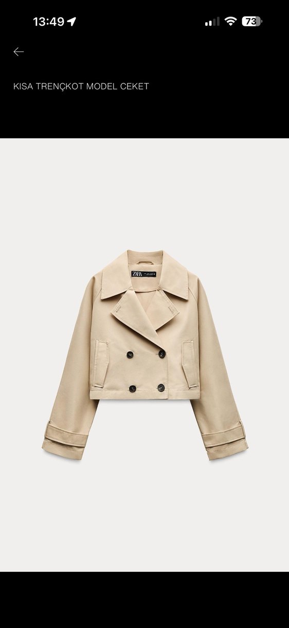 Bej renkli kısa trençkot, düğmeli ve kesik yaka detaylıdır. Yumuşak süet kumaştan yapılmış, regular fit ve askılı kollarla günlük şık sokak stili için uygundur. Oversize olduğundan s ve xs giyenlere rahatlıkla olacaktır.
