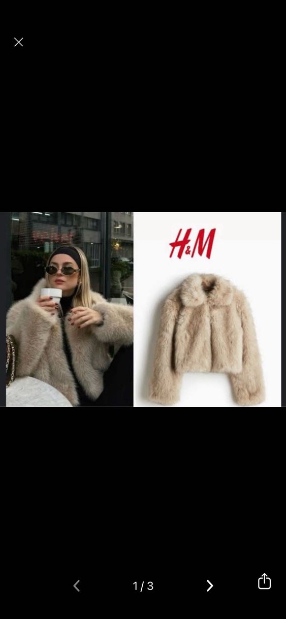 H&M markalı, uzun kollu, bol kesim, kısa bej suni kürk ceket. yumuşak, sıcak tutan kumaşla günlük kullanıma uygun.