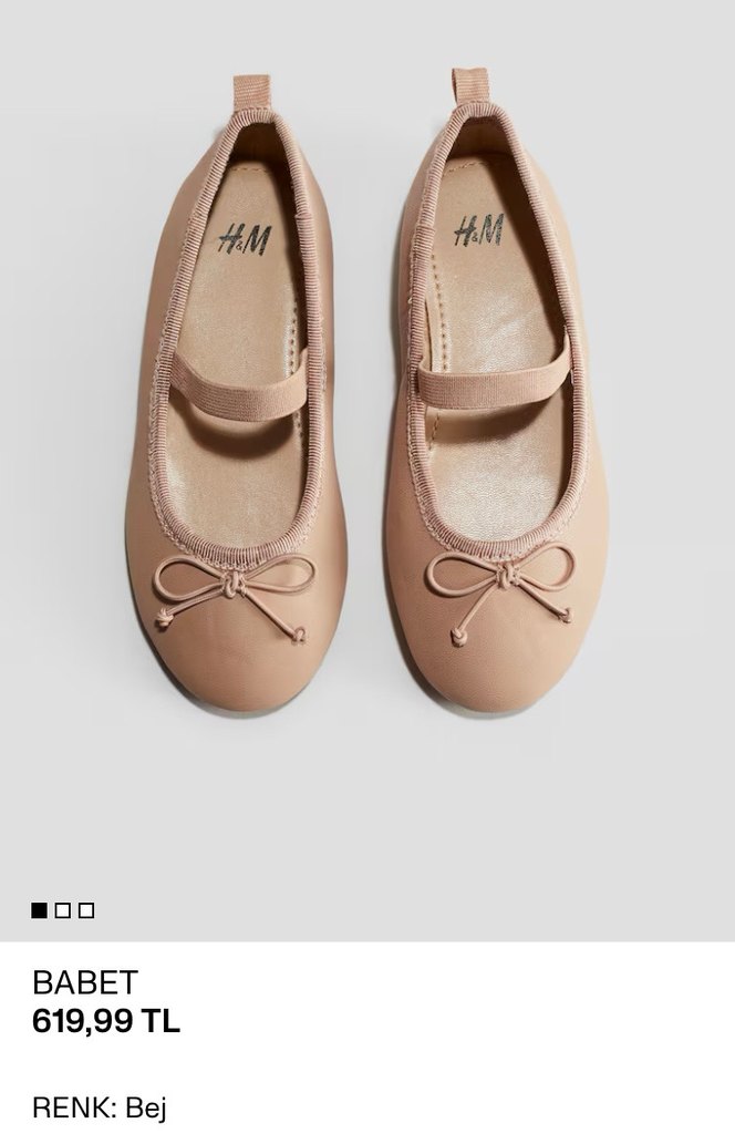 Bej renkte, yumuşak kauçuk malzemeden yapılmış kız çocuk babet ayakkabılar, önünde zarif bir fiyonk bulunur. 34 no bir kere gösteride giyildi Yeni durumda Son fiyat