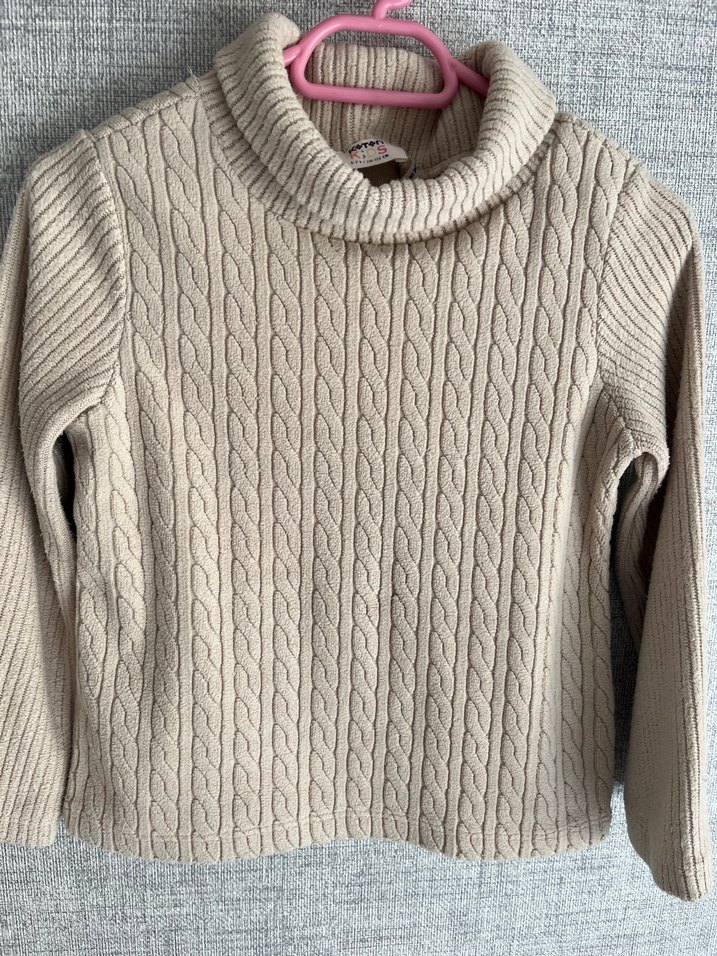 Bej renkli, balıkçı yaka ve uzun kollu, normal boyda örgü kazak. Fitted kesimi ve sade deseniyle günlük kullanıma uygundur.