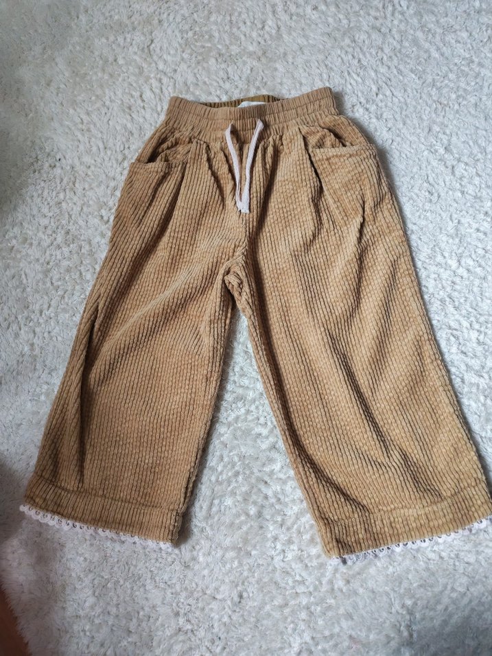 kadife kumaştan bol kesim bej kız çocuk pantolonu. Bohem tarzda, cepli ve bağcıklı bel detayına sahiptir. Zara markalı ürün 4 yaş 3 4 defa ancak giyildi.
