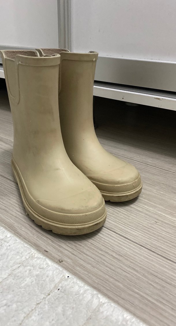 Bej renkli, lastik malzemeden üretilmiş, desensiz kız çocuk botu. Sade ve temel bir tarz sunar. Çok az kullanıldı sadece yan üç kısımda sürtünme izi mevcut fotoda ekledim
