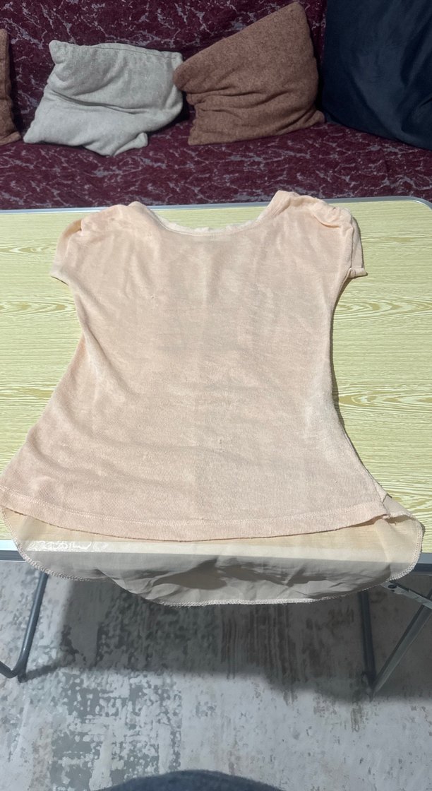Pudra pembesi keten kumaş, m beden çok az ip kaçması var ancak iyi durumda