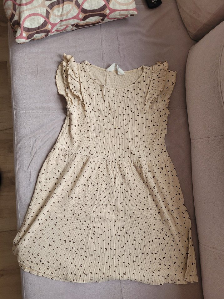 Bej renkli, rahat kumaştan yapılmış kız çocuk kolsuz elbise. Bisiklet yaka ve fırfır detaylarıyla bohem tarzda, bol kesim ve hafif desenlidir.