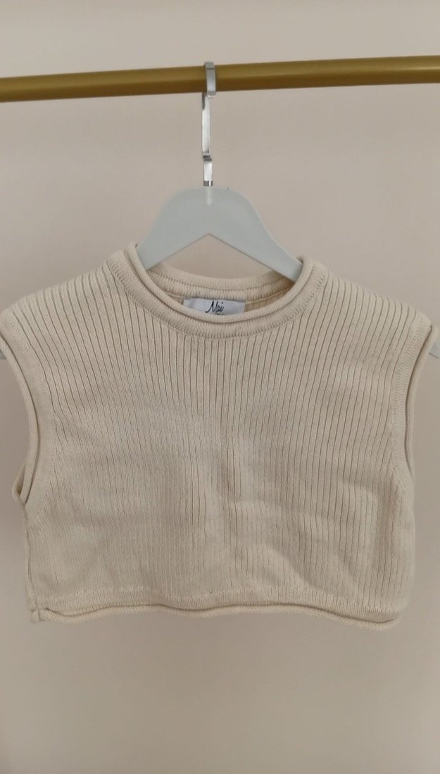 Bej Kız Çocuk Kolsuz Triko Süveter