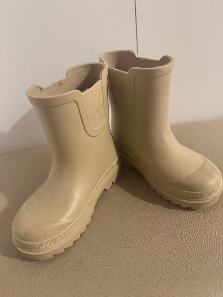 Bej renkli kız çocuk lastik botları, pastel ton ve desensiz sade tasarıma sahiptir. Temel normcore tarzıyla zahmetsiz şıklık sunar. Numarası oğluma olmuyor malum ayakları çabuk büyüdüğü için çok giyilmedi taş çatlasın 2 kez silinse tertemiz olur